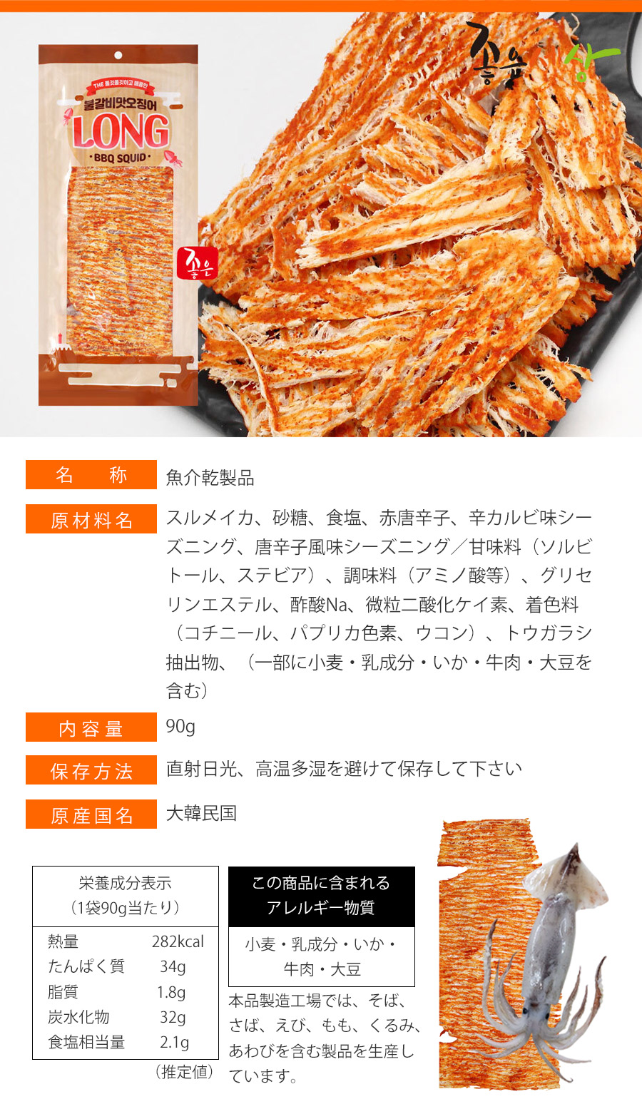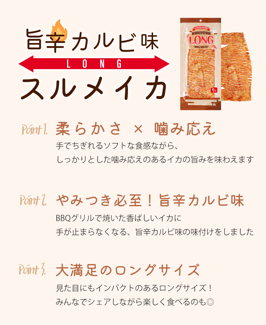韓国屋台の香ばしいあの味♪ 旨辛カルビ味LONGスルメイカ |